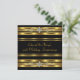 Invitación de aniversario de bodas de 50 años con negro, dorado y adornos de joyas en negro y dorado.