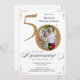 Invitación de Aniversario de Bodas de Oro de Caligrafía en Oro Blanco. Invitación elegantemente diseñada para celebrar un aniversario de bodas especial, con una foto personalizada de la pareja y caligrafía con elementos de florituras vintage. ¡Una forma verdaderamente memorable y especial de celebrar este hito!