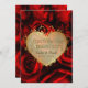 Suntuosa invitación de aniversario de bodas de oro con una profusión de rosas rojas carmesí profundas en la parte delantera y trasera de la tarjeta. La parte delantera tiene una elegante pancarta de corazón dorado. Personalice el texto de la parte delantera y trasera de la invitación con su información. Este diseño está disponible en otros artículos de mi tienda. También disponible en versión cuadrada en mi tienda.