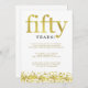 Esta elegante invitación para la fiesta de aniversario de bodas número cincuenta dice "cincuenta" en texto dorado falso, y tiene un borde de confeti dorado falso en la parte inferior.