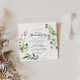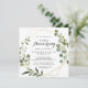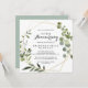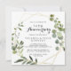 Esta invitación de aniversario de bodas de 50 años geométrico dorado tropical es perfecta para una celebración romántica de aniversario de bodas. El diseño presenta hermosas hojas verdes pintadas a mano, adornando un marco geométrico dorado.