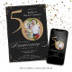Invitación de Aniversario de Bodas de Oro Negro Caligrafía. Invitación elegantemente diseñada para celebrar un aniversario de bodas especial, con una foto personalizada de la pareja y caligrafía con elementos florales vintage. ¡Una forma verdaderamente memorable y especial de celebrar este hito!