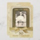 Esta invitación creativa para el 50 aniversario tiene un aspecto antiguo de antaño. El diseño de la parte frontal presenta un marco rodeado de una imagen realista de encaje y resaltado con imágenes de acentos de strass de tonos dorados. Reemplace la foto de muestra con su propia foto utilizando la plantilla fácil proporcionada. Debajo de la foto hay una imagen de un lazo de cinta de purpurina dorada falsa y todo está colocado sobre un fondo que simula pergamino antiguo y correspondencia vintage. Personalice la parte frontal con los años de aniversario (como se muestra) o los nombres de la pareja. Dos líneas de texto en la parte inferior también son personalizables. El reverso presenta la misma imagen de correspondencia antigua. Reemplace el texto de muestra con los detalles de su evento utilizando las plantillas proporcionadas.