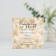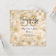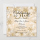 Plantilla de invitación elegante para fiesta de aniversario de bodas número 50 con destellos dorados de invierno. Cuenta con luces doradas, copos de nieve dorados y destellos dorados.