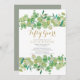 Con delicadas hojas de eucalipto pintadas con acuarela, esta elegante invitación botánica para bodas de oro se puede personalizar con la información de su evento especial de aniversario, con un fondo de salvia plateada en el reverso que se puede personalizar a su color favorito. Diseñado por Thisisnotme