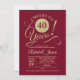 Invitación de aniversario de 40 años en rojo rubí con dorado brillante falso. ¡Salud por 40 años! Perfecto para una celebración elegante.