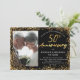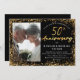 Esta es una invitación de fiesta elegante y chic para invitar a sus invitados a celebrar su aniversario de bodas de oro número 50 con estilo. Es un diseño de letra manuscrita simple y elegante en dorado con una foto, superposición gráfica de brillo dorado y texto simple en blanco sobre un fondo negro clásico y moderno. Por favor, contacte al diseñador para cualquier consulta sobre este diseño.