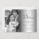 Invitación de aniversario de bodas 15 años con foto. Diseño elegante en plata con fuente de escritura y confeti de diamantes. Se puede personalizar para mostrar cualquier año de matrimonio. ¡Salud por 15 años!