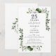 Esta elegante invitación de aniversario de bodas de plata en verde oliva puede ser personalizada con su información en tipografía plateada moderna. Diseñada por Thisisnotme©