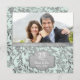 Preciosa invitación de vigésimo quinto aniversario de bodas sobre fondo de menta acuarela con una superposición de elegantes hojas de plata. Estandarte plateado a juego en la parte delantera y trasera de la tarjeta. Sube una foto especial para reemplazar este marcador de posición de plantilla de foto. Personalice el texto de la parte frontal y posterior de la invitación con su información. Este diseño está disponible en otros artículos de mi tienda.