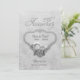 Hermosa invitación de aniversario de bodas de plata 25 con un fondo de damasco floral gris plateado con sombreado sutil de claro a oscuro. El área frontal muestra un elegante banner de lirio de Calla. El texto artístico de Aniversario de plata 25 encima añade un acento elegante. La parte posterior de la tarjeta tiene un patrón de damasco floral a juego. Personalice el nombre frontal y el texto de la fecha y las áreas de la parte posterior de la tarjeta con su información.