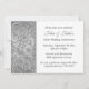 El lado izquierdo de esta invitación plana tiene un borde de hoja floral en espiral sobre un fondo con aspecto plateado vibrante. Las plantillas grises para su texto personalizado aparecen a la derecha y el reverso tiene una plantilla de foto para su imagen.