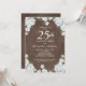 Invitación de aniversario de bodas de plata floral marrón y blanco con un hermoso marco floral blanco.