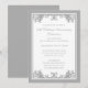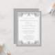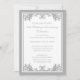 Una invitación tradicional de celebración de aniversario de bodas número 25 con un diseño vintage de pergamino con florituras de plata. Personalice con los detalles de su fiesta. Ilustración de Mujka Design