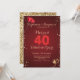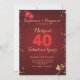 Tarjeta de invitación plana elegante y chic para el 40º aniversario de bodas de rubí sobre un fondo de falso brillo dorado y borgoña intenso. Los detalles de la tipografía de fuente decorativa son fáciles de personalizar.
