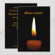 Envía esta elegante invitación para un evento muy especial, o simplemente una fiesta divertida. Cuenta con una simple fotografía de naturaleza muerta de una vela marrón con una llama encantadora en tonos de blanco, amarillo, dorado y naranja. Está configurado sobre un fondo negro puro. Otra vela está en la parte posterior junto con toda la información importante. El texto está redactado para un aniversario de bodas, pero se puede cambiar fácilmente para adaptarlo a tu celebración única.