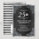 Invitación elegante y ornamentada en negro y plateado para la fiesta de aniversario de bodas número 25.