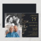 Esta elegante invitación de aniversario de bodas de 75 años con hojas doradas se puede personalizar con su información en tipografía dorada moderna y sus 2 fotos especiales. Diseñado por Thisisnotme©