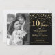 Invitación de Aniversario de Bodas número 10 con Foto. Diseño elegante en dorado y negro con letra script y confeti. Se puede personalizar para mostrar cualquier año de casados. ¡Salud por 10 años!