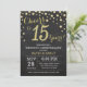 Invitación de Aniversario de Bodas número 15 Pizarra Negro y Dorado. Decimoquinto Aniversario de Bodas. Fondo de Diamante Brillante Negro y Dorado. Confeti Dorado. Cumpleaños de Adulto. Fiesta de Cumpleaños para Hombre o Mujer. Para personalizar aún más, haga clic en el botón "Personalizar" y use nuestra herramienta de diseño para modificar esta plantilla.