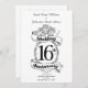 Un diseño romántico en blanco y negro para una pareja que celebra una fecha señalada en su vida de casados. Esta ilustración tiene rosas blancas y negras con el texto aniversario de bodas número 16. Para un marido y mujer que celebran 16 años de feliz vida matrimonial juntos.