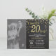 Aniversario de bodas número 20 con foto personalizada. Invitación de pizarra negro y dorado. Vigésimo aniversario de bodas. Fondo de diamante con purpurina dorada. Confeti dorado. Cumpleaños adulto. Fiesta de cumpleaños para hombre o mujer. Para una mayor personalización, haga clic en el botón "Personalizar" y utilice nuestra herramienta de diseño para modificar esta plantilla.