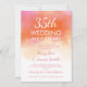 Elegante diseño de invitación para fiesta de aniversario de bodas número 35 con motivo de acuarela de coral rosa de verano, nombre y fecha personalizados y texto adicional.