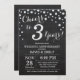 Invitación de Aniversario de Bodas número 3 Pizarra Negro y Plateado. Tercer Aniversario de Bodas. Fondo de Diamante Brillante Negro y Plateado de Pizarra. Confeti Plateado. Cumpleaños de Adulto. Fiesta de Cumpleaños para Mujer o Hombre. Para una mayor personalización, haga clic en el botón "Personalizar" y use nuestra herramienta de diseño para modificar esta plantilla.
