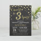 Aniversario de bodas número 3 Invitación pizarra negro y dorado. Tercer aniversario de bodas. Fondo de diamante con brillo negro y dorado. Confeti dorado. Cumpleaños adulto. Fiesta de cumpleaños para hombre o mujer. Para una mayor personalización, haga clic en el botón "Personalizar" y utilice nuestra herramienta de diseño para modificar esta plantilla.