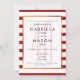 Con un clásico fondo a rayas de rubí y blanco, esta elegante invitación de aniversario de bodas de rubí número cuarenta presenta un elegante borde de lámina de rubí falso que enmarca los detalles de su fiesta de aniversario número 40 con tipografía chic sobre un 40 elegante. Diseñado por Thisisnotme©