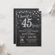 Invitación de pizarra para 45º aniversario de bodas en negro y plata. Cuarenta y cinco años de aniversario de bodas. Fondo de diamante con brillo negro y plata de pizarra. Confeti plateado. Cumpleaños de adulto. Fiesta de cumpleaños de mujer o hombre. Para una mayor personalización, haga clic en el botón "Personalizar" y use nuestra herramienta de diseño para modificar esta plantilla.