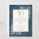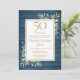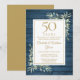 Con delicada vegetación de jardín campestre de acuarela sobre un fondo de madera rústica azul, esta elegante invitación de aniversario se puede personalizar con la información de su celebración especial de 50 años de aniversario, con un fondo dorado en el reverso. Diseñado por Thisisnotme©
