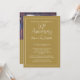 Una invitación de aniversario de bodas dorada con una foto y anuncio en un lado y los detalles de la fiesta en el segundo lado.