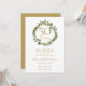 Con una elegante guirnalda floral de vegetación boscosa, esta chic tarjeta de guardar fecha de aniversario de bodas número 50 con temática botánica puede ser personalizada con la información de su aniversario dorado. El reverso presenta una guirnalda floral de vegetación que enmarca las fechas de su aniversario en texto blanco elegante sobre un fondo dorado. Diseñado por Thisisnotme©