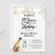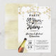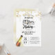 Descorcha para una fiesta de aniversario de bodas 50 AÑOS EN HECHURA con estas invitaciones que presentan un diseño de título de tipografía retro que incorpora el año de su boda dentro del diseño. Negro y dorado con serpentinas de guirnalda de estrellas doradas. Póngase en contacto con el diseñador a través de Zazzle Chat o makeitaboutyoustore@gmail.com si desea que se modifique este diseño, en otro producto o desee artículos coordinados.