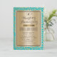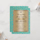 Invitaciones de Aniversario de Bodas número 50 Turquesa y Estampado de Leopardo Dorado.