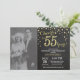 Aniversario de bodas número 55 con foto personalizada. Invitación de Pizarra Negro y Dorado. Aniversario de bodas cincuenta y cinco. Fondo de Diamante Brillante de Pizarra Negro y Dorado. Confeti Dorado. Cumpleaños de adulto. Fiesta de cumpleaños para hombre o mujer. Para una mayor personalización, haga clic en el botón "Personalizar" y use nuestra herramienta de diseño para modificar esta plantilla.