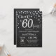 Invitación de aniversario de bodas número 60 Pizarra Negro y Plateado. Aniversario de sesenta años de casados. Fondo de diamante con brillo negro y plateado en pizarra. Confeti plateado. Cumpleaños de adulto. Fiesta de cumpleaños de mujer o hombre. Para personalizar aún más, haga clic en el botón "Personalizar" y use nuestra herramienta de diseño para modificar esta plantilla.