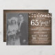 Invitación de aniversario de bodas número 65 con foto personalizada. Fondo de madera rústica. Luces de cuerda. Blanco y negro. 1º, 2º, 3º, 4º, 5º, 10º, 15º, 20º, 25º, 30º, 35º, 40º, 45º, 50º, 55º, 60º, 65º, 70º, 75º, 80º, Cualquier año. Cumpleaños adulto. Cumpleaños de mujer o hombre. Para una mayor personalización, haga clic en el botón "Personalizar" y use nuestra herramienta de diseño para modificar esta plantilla.