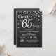 Invitación de aniversario de bodas número 65 pizarra negro y plata. Aniversario de bodas sesenta y cinco. Fondo de diamante con brillo negro y plata en pizarra. Confeti plateado. Cumpleaños de adulto. Cumpleaños de mujer o hombre. Fiesta de cumpleaños masculina. Para una mayor personalización, haga clic en el botón "Personalizar" y utilice nuestra herramienta de diseño para modificar esta plantilla.