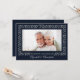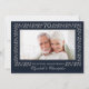 Elegantes invitaciones para la fiesta de aniversario de bodas número 70 con diseño de hoja con brillo en azul marino y plata con foto y texto personalizados. Agregue su propia imagen y personalice los nombres, fecha y todos los detalles de sus invitaciones. Tarjetas, favores y regalos a juego disponibles en la categoría de Aniversario de Bodas de nuestra tienda.