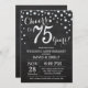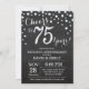 Invitación de aniversario de bodas número 75 pizarra negro y plateado. Aniversario de bodas setenta y cinco. Fondo de diamante de purpurina negro y plateado de pizarra. Confeti plateado. Cumpleaños de adulto. Fiesta de cumpleaños de mujer o hombre. Para una mayor personalización, haga clic en el botón "Personalízalo" y use nuestra herramienta de diseño para modificar esta plantilla.