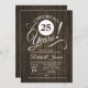 Invitación de aniversario de 25 años rústica con patrón de madera marrón oscuro y fuente de letra cursiva blanca. ¡Salud por 25 años! Perfecto para una celebración elegante.