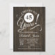 Invitación de aniversario de bodas rústico 45 con patrón de madera marrón oscuro. ¡Salud por 45 años! Perfecto para una celebración elegante.