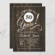 Invitación de aniversario de bodas rústico 50 con patrón de madera marrón oscuro. ¡Salud por 50 años! Perfecto para una celebración elegante.