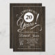 Invitación de cumpleaños de aniversario número 20 con patrón de madera marrón oscuro y fuente de letra blanca. ¡Salud por 20 años! Perfecto para una celebración elegante.