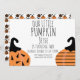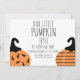 Pequeñas invitaciones de calabaza con calabazas modernas. Ideal para el cumpleaños de Halloween con cualquier tema de edad.
