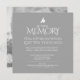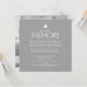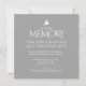 Recuerde el fallecimiento de su ser querido con esta invitación conmemorativa del décimo aniversario de la muerte. Una simple y pacífica imagen de paloma blanca voladora sobre el fondo de color de su elección, actualmente gris. Personalice su lugar de reunión, y el nombre de su ser querido y los detalles de rsvp y su foto favorita al revés. Hay otros elementos coincidentes disponibles. Diseñado por www.mylittleeden.com