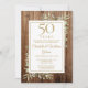 Con delicadas hojas verdes botánicas pintadas con acuarela sobre un fondo de madera rústica. Esta invitación de aniversario chic se puede personalizar con los detalles de su celebración de 50 años de aniversario en tipografía dorada moderna, con un fondo dorado en el reverso. Diseñado por Thisisnotme©