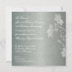 Elegante invitación de aniversario de bodas de plata con damasco plateado y un toque floral. Con un sutil tono verde aqua, esta invitación formal y elegante seguramente impresionará a sus invitados en su fiesta de aniversario de bodas de plata de Paper Expressions.